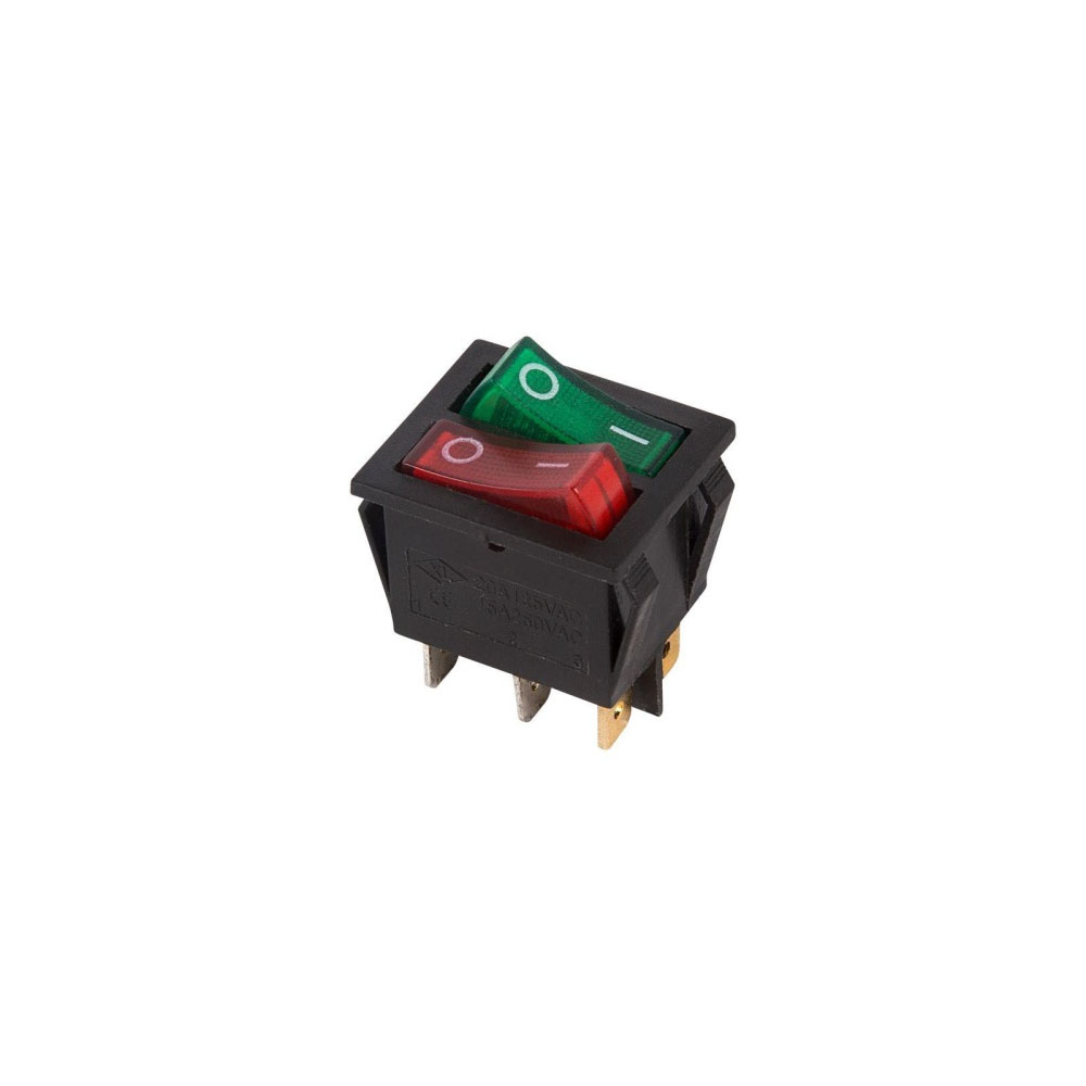 Выключатель с подсветкой двухклавишный красный,зеленый 250В 15A RWB-511B 6 контактов REXANT 36-2450