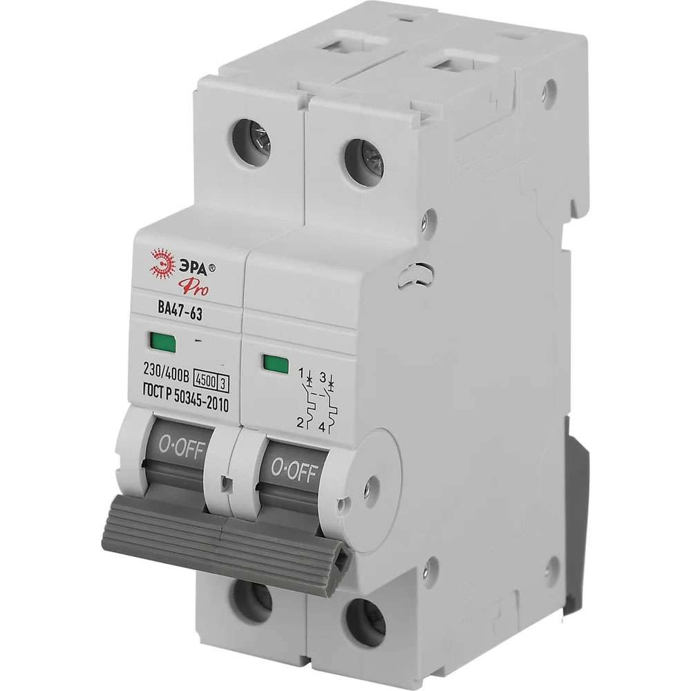 Автоматический выключатель двухполюсный ВА47-63 63А характеристика С ЭРА PRO VA63-2P63C4.5