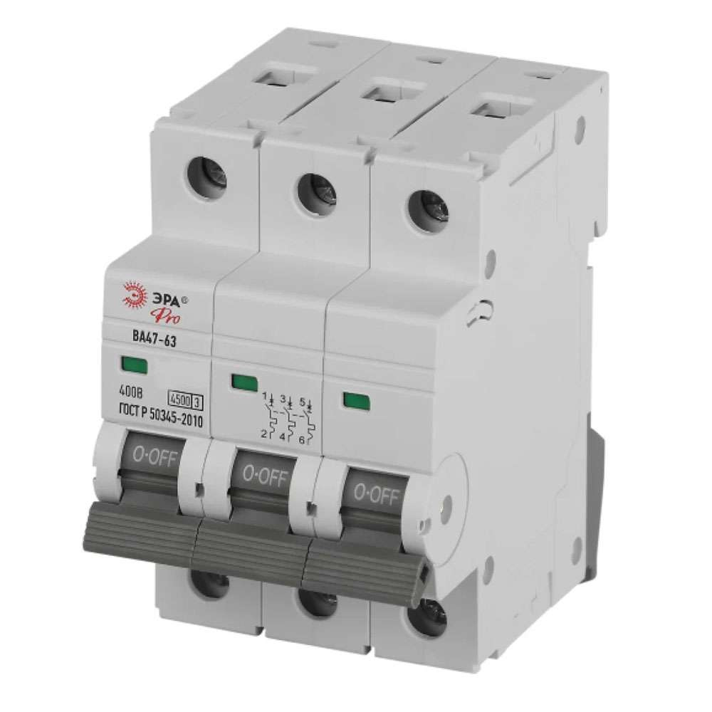 Автоматический выключатель трёхполюсный ВА47-63 50А характеристика С ЭРА PRO VA63-3P50C4.5